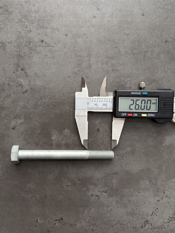Болт с шестигранной головкой, высокопрочный, мелкий шаг резьбы. Болт российского производства. Заводской номер: 00001-0059897-319. Стандарт: таблица FIAT-ВАЗ 10312. Диаметр резьбы: 20 мм. Шаг резьбы: 1,5. Длина болта: 130 мм. Длина резьбы: 52 мм. Размер "под ключ": 30 мм. Класс прочности: 10.9. Покрытие: цинк. В соответствии со стандартами, длина болта измеряется от опорной части головки до конца фаски, которой завершается его резьбовой стержень.