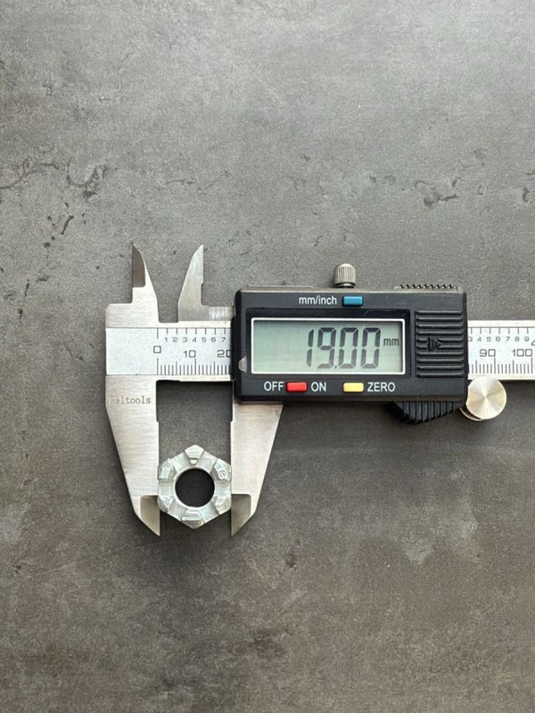 Гайка М12х1,25 прорезная КАМАЗ, ГАЗ, Размеры (ДхШхВ), мм: 19x19x10, Диаметр резьбы, мм: М12х1,25, Размер ключа, мм: 19, Шаг резьбы: 1,25 мм.