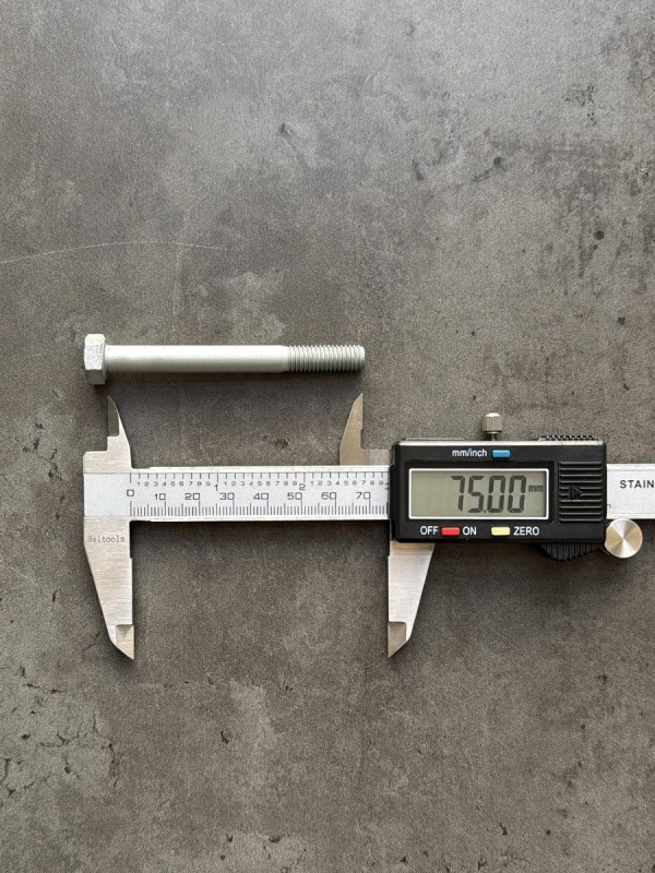 Болт с шестигранной головкой, высокопрочный, с мелким шагом резьбы. Болт российского производства. Стандарт: ГОСТ 7798-70. Можно использовать, как альтернативу Din 960. Диаметр резьбы: 8 мм. Шаг резьбы: 1,25. Длина болта: 75 мм. Длина резьбы: 22 мм. Размер "под ключ": 17 мм. Класс прочности: 8.8. Покрытие: цинк-ламель. В соответствии со стандартами, длина болта измеряется от опорной части головки до конца фаски, которой завершается его резьбовой стержень..